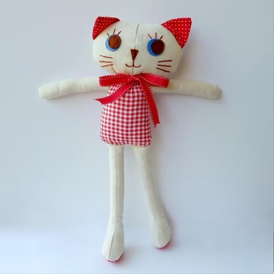Kitty Cat Handmade Cloth Doll 12”- Audrey